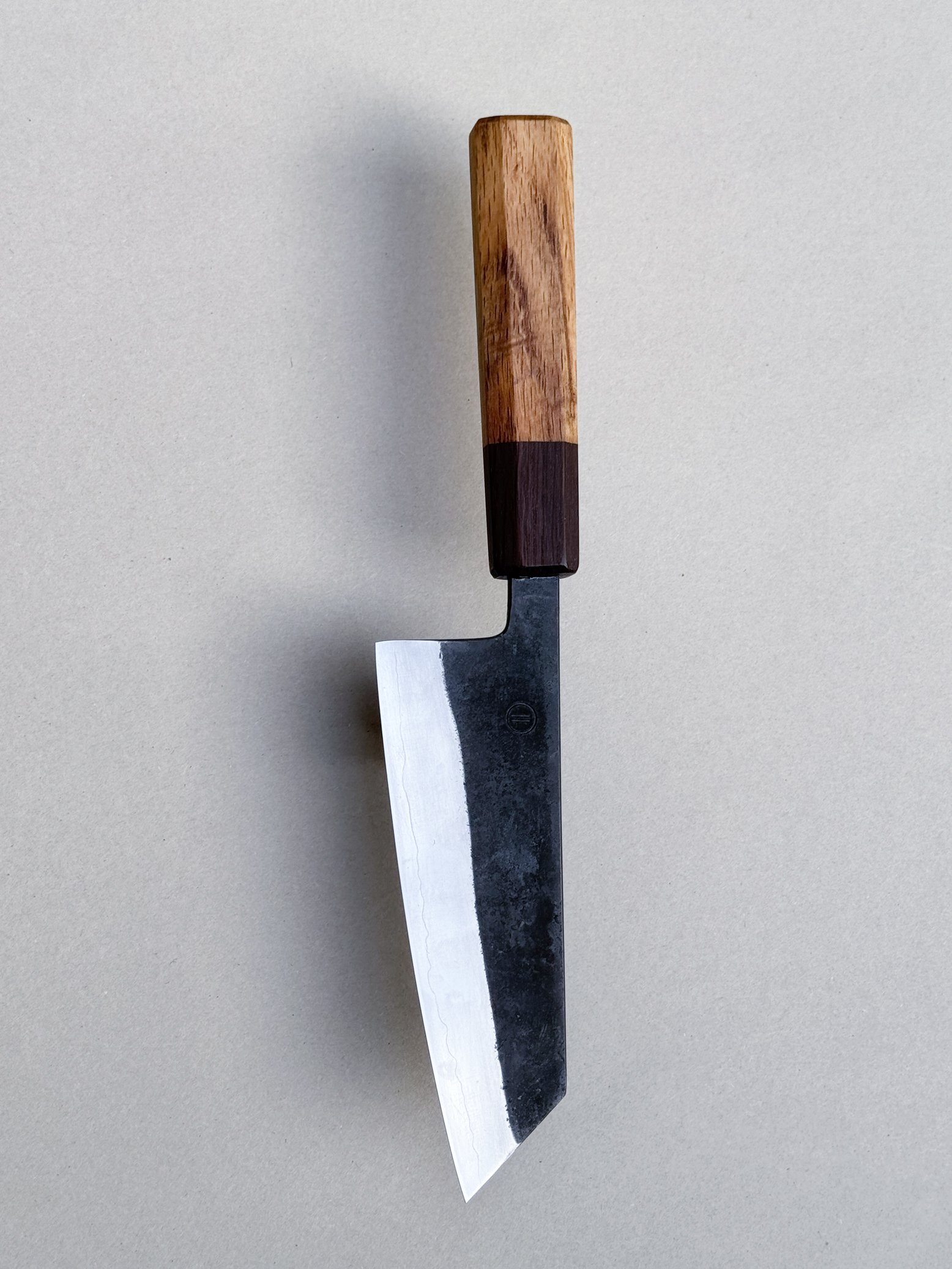 Handle in local sustainably-sourced elm and5000 year old bog oak 125mm