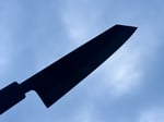 A chef knife with a k-tip. The Gyuto shape was developed by Japanese knifemakers in the second half of the 19th century when western-made chefs' knives started to be seen in Japan. Gyuto literally means 'cow sword'. The Kiritsuke version has a sharp angled front edge giving an extra fine tip, and it looks great.