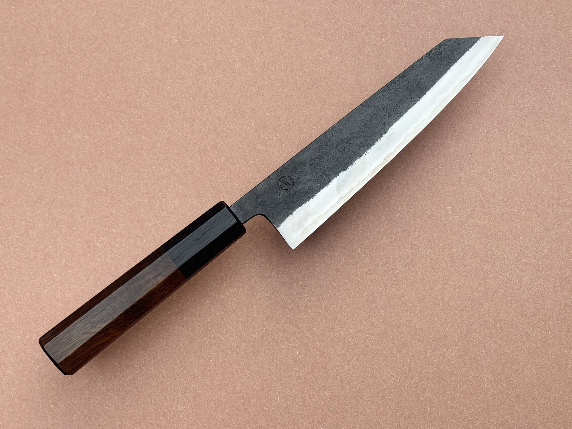 174mm K-tip. In stainless clad Aogami Super - a very high carbon steel from Hitachi.