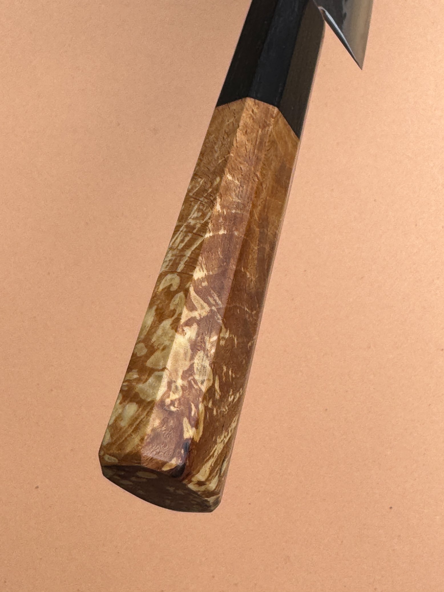 Handle in local sustainably sourced spalted beech and 5000 year old Fenland bog oak - 125mm