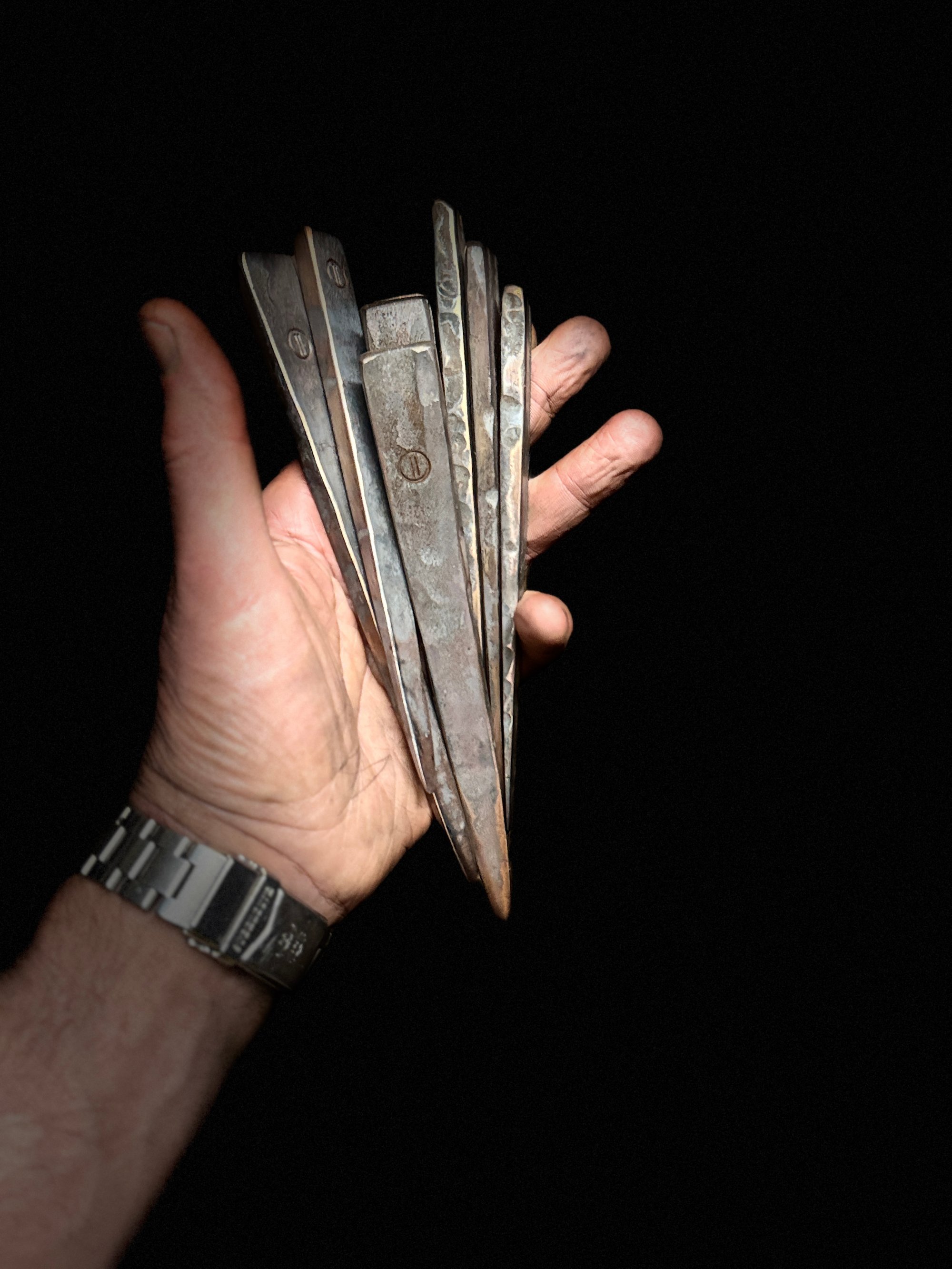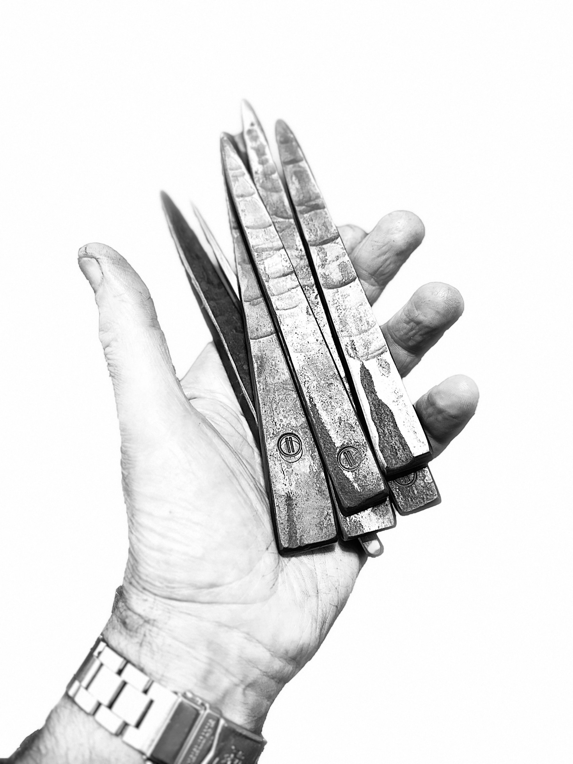 Forged from vintage leaf springs from a 1932 MG Midget.